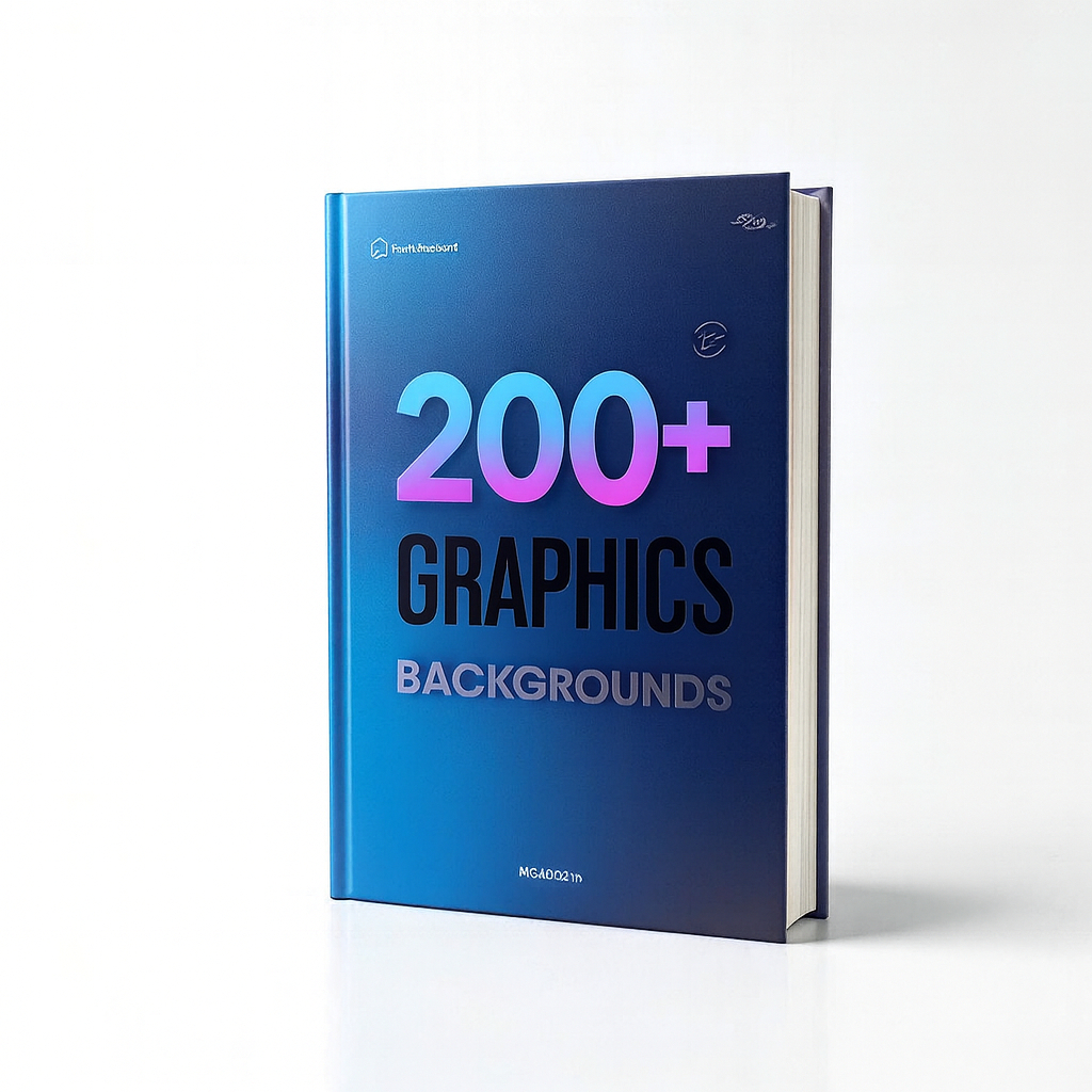 This is a curated collection of over 200 high-quality background graphics for designers, marketers, and creators. This hardcover companion showcases the variety and versatility of the pack with a clean, modern cover design. Inside you’ll find vibrant gradients, subtle textures, geometric patterns, abstract compositions, and versatile photo-backed scenes—each asset optimized for web, social media, presentations, and print mockups.